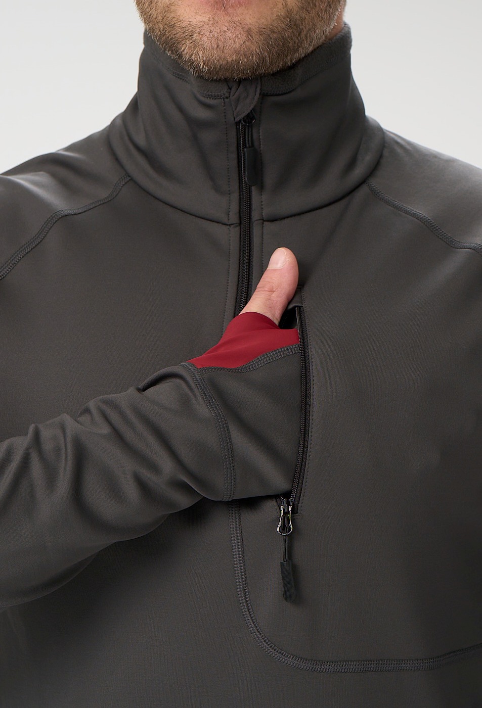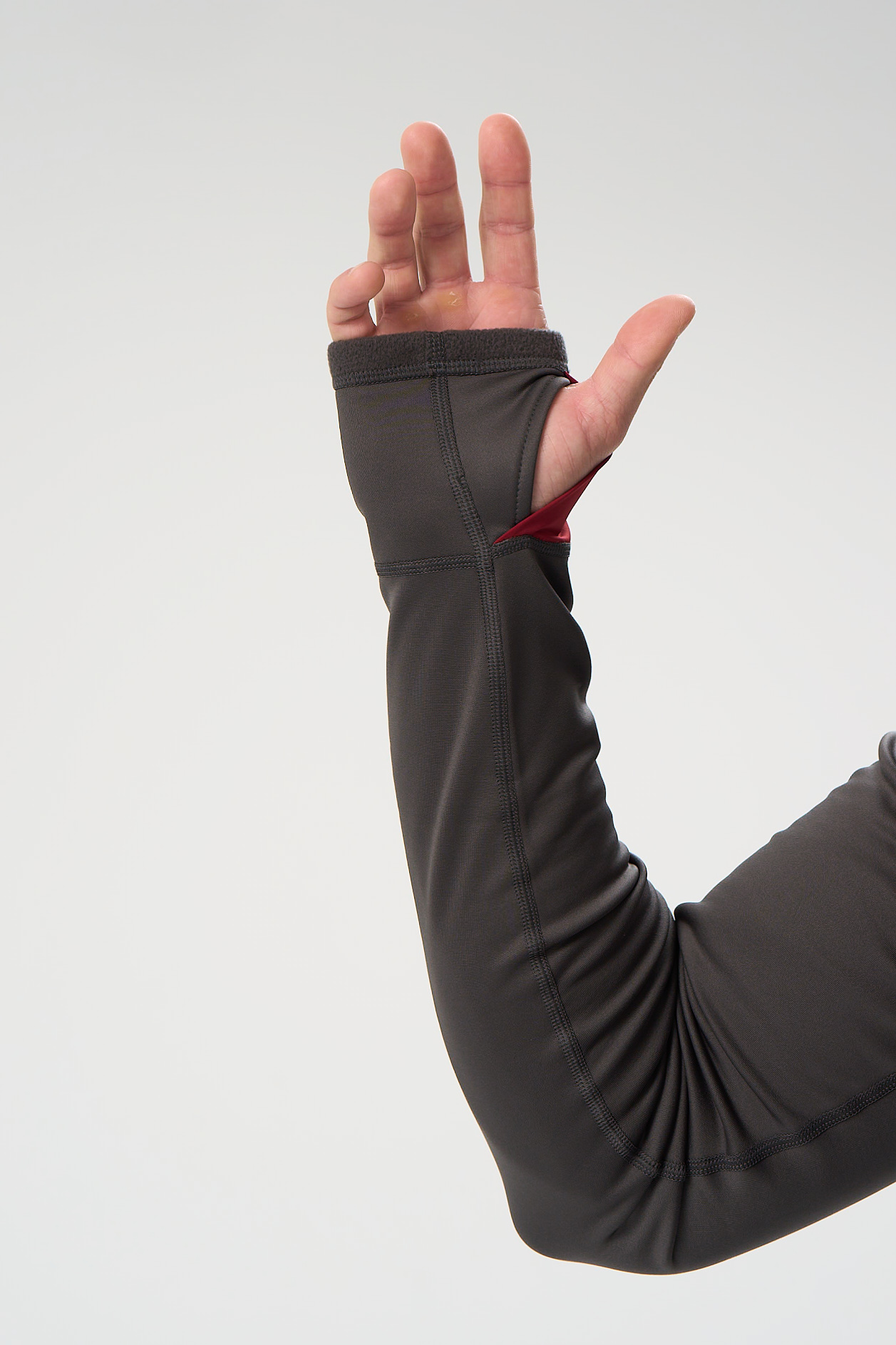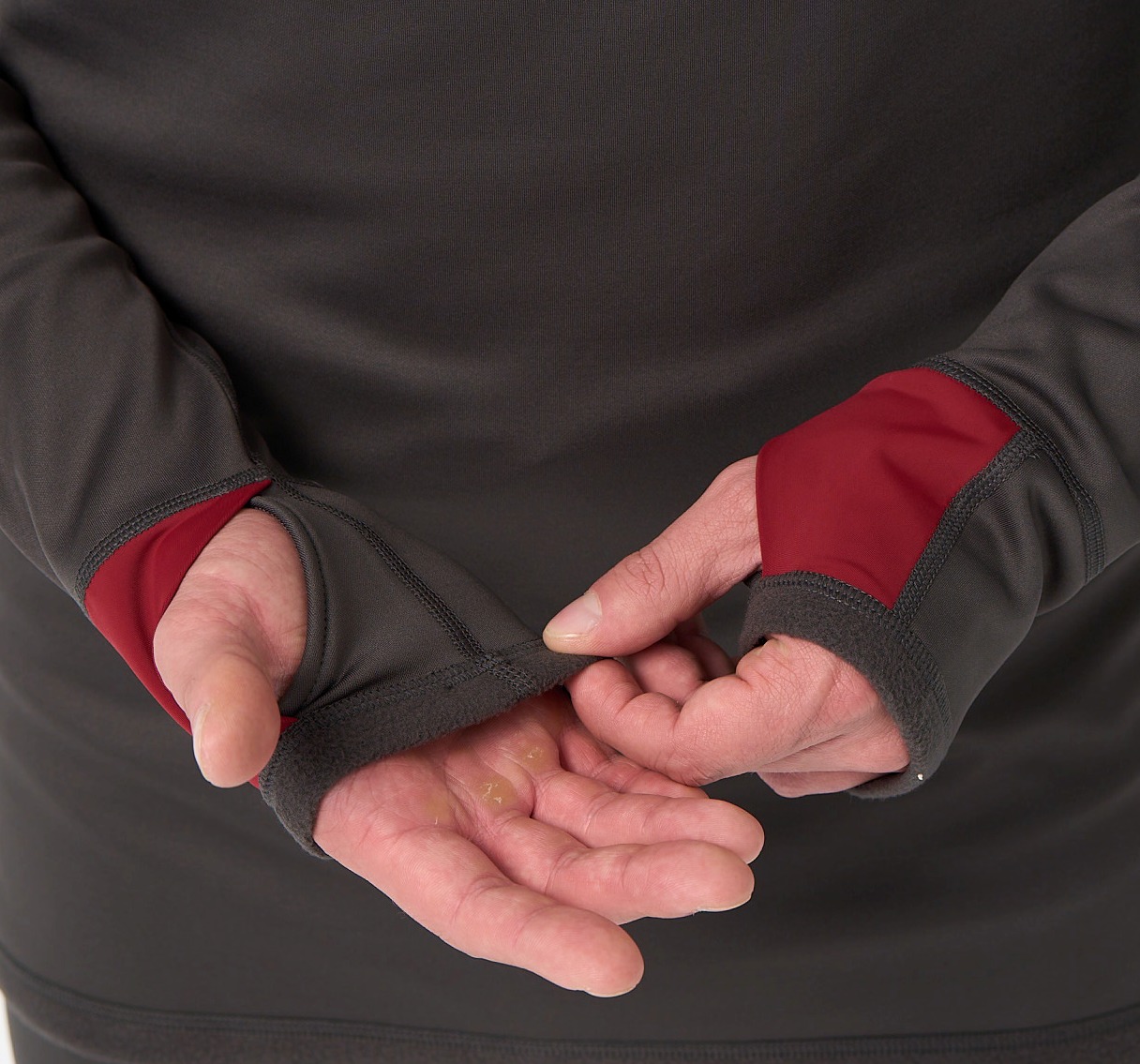 2. Длинные рукава, с манжетом и отверстием для большого пальца, чтобы закрыть всю ладонь. Это отличная защита от ветра, удобно под флиской или курткой. Если нужно, манжет можно подвернуть и зафиксировать на запястье.