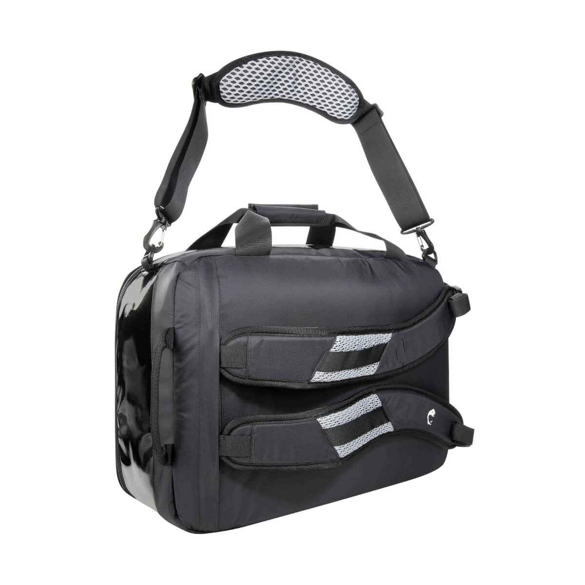 Широкие ручки и съёмный регулируемый плечевой ремень обеспечивают комфорт при переноске. Кроме того, у сумки есть лямки (чтобы нести сумку, как рюкзак), которые убираются в отдельный карман на спинке.